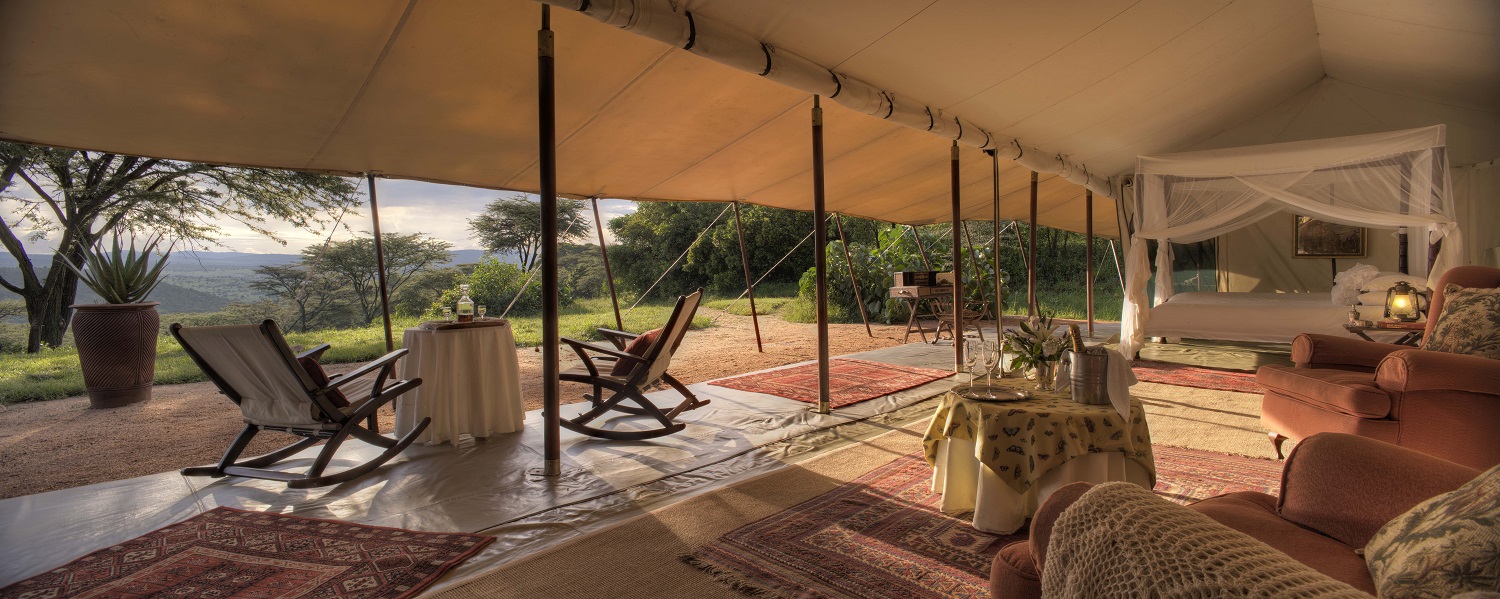 Namiot dla nowożeńców w obozie Cottar’s 1920s Safari Camp z widokiem na bezkresne równiny Masai Mara i Serengeti (źródło: www.cottars.com)