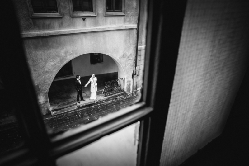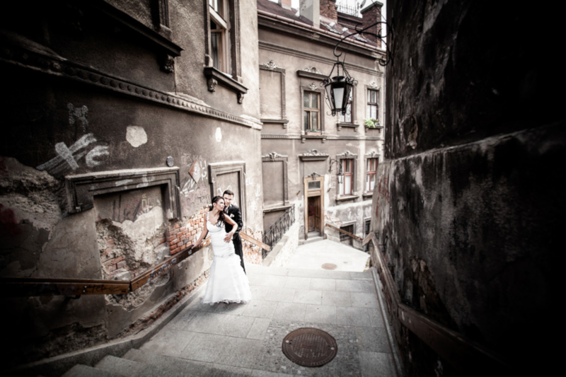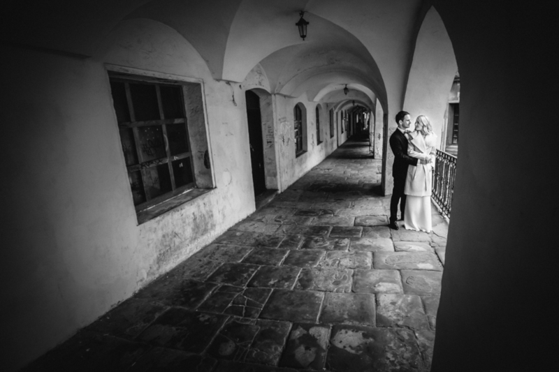 Inną opcją gdy pogoda nie dopisuje jest skorzystanie z pięknych podcieni i wnętrz klimatycznych kamieniczek. Wiemy, że deszcz niezbyt sprzyja ślubnym strojom, a przede wszystkim makijażowi i fryzurze Panny Młodej. Jednak mimo wszystko nie warto rezygnować z sesji, bo nawet przy takiej nie do końca wymarzonej pogodzie można stworzyć przepiękną pamiątkę.