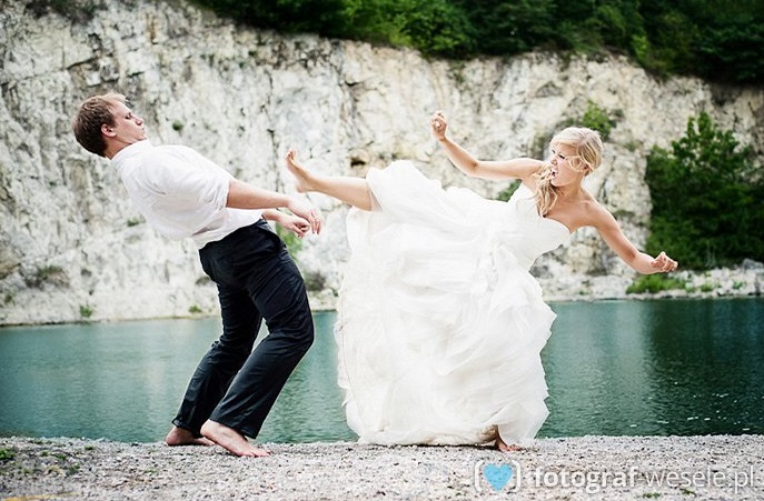 Jednym ze sposobów na taką właśnie sesję są zdjęcia ślubne z humorem. Taka opcja świetnie sprawdza się u osób, które cenią swoje poczucie humoru. Oczywiście nie wszystkie zdjęcia można zrobić „na wesoło”. Ujęcia z kościoła/urzędu, czy z uroczystości weselnej i tak będą miały bardziej poważny charakter, wymaga tego miejsce i forma. Dlatego właśnie to sesja ślubna jest doskonałą okazją do wykonania dowcipnych zdjęć ślubnych. Sesja plenerowa to okazja, kiedy możemy użyć swojej wyobraźni i spróbować rzeczy całkowicie nowe. Może to być plener lub niestandardowy pomysł, mogą także śmieszne miny albo dziwne ujęcia. Sesja ślubna to okazja do całkowitej swobody, bo tylko para i fotograf decydują o tym, jak będzie ona wyglądać. Nie ograniczajmy się w żaden sposób, przemyślmy dokładnie swoją koncepcję i nie bójmy się jej wykonać. Na pewno nikt nie będzie tego żałował.