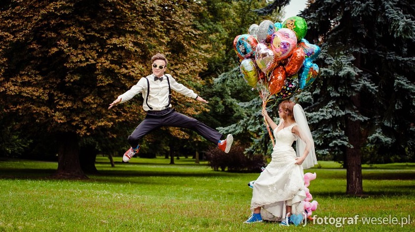 Choć ślub to wydarzenie bardzo poważne, będące symbolem wejścia na nową drogę życia, nie oznacza to, że para musi rezygnować ze swojej dziecinnej radości. Przeciwnie, chodzi o to, żeby świętować ten dzień tak, jak uważamy za stosowne i jeśli nasza osobowość wyraża szczęście „na luzie” i bez wyniosłości, to tym lepiej! Sesja ślubna to najlepszy sposób na wyrażenie siebie, a więc, jeśli tylko mamy takie podejście, to warto przygotować zdjęcia ślubne z humorem!